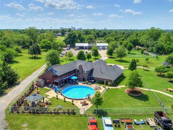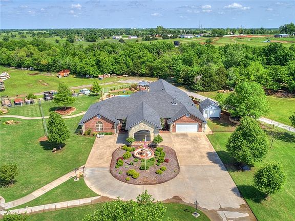 EXPERIENCE Premier, Luxury LIVING on this 7.07 Acre Private Retreat. Picturesque property with private, treed entrance. Exceptionally crafted residence boasts a breathtaking 4336 sqft. DESIGNER interiors w/ soaring 16ft Ceilings & Stone Fireplace in the Living. Gorgeous Woodwork, Chefs Kitchen complete w/ Jenn Air Appliances, Double ovens, Gas Cook top, EXPANSIVE center island, & Ample Cabinet Space. Outdoor Living area is THE PLACE TO BE! Entertainers dream. VERSATILE SPACE INCLUDES: 40x150 Shop Building, 1200 Sq Ft Office Space featuring a full Bath & Kitchen(could easily be converted to a single family residence). All 4 shop units are fully equipped w/ heat & air, electric, concrete floors, motorized over head doors & bunk room. Other Property amenities include:fully equipped greenhouse, chicken house, 3 storage buildings, pool, pergola, fire pit, outdoor kitchen & more. Making the possibilities for future use & development endless.