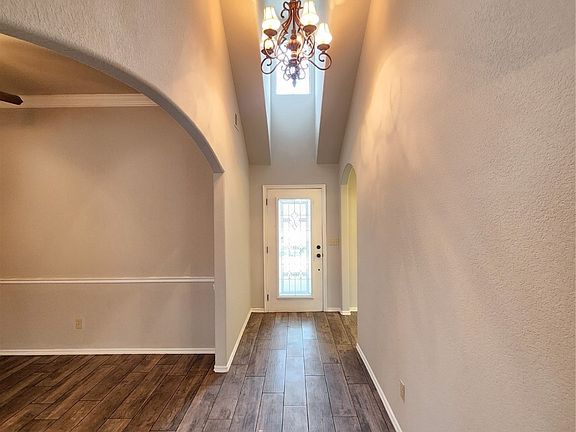 Beautiful Terry Davis Home with brand new floor tile, carpet and paint throughout! High ceiling in the foyer with an overhead window. Formal Dining Room with chair rail molding and crown molding just off of the Great Room and Kitchen. Crown molding in the Great Room, with gas fireplace and large oversized wood look ceramic tile flooring. Beautiful granite counters and island in the Kitchen, with built-in stainless steel appliances (dishwasher to be installed shortly). Large breakfast nook with door to the covered patio. Large primary suite with 10' vaulted ceiling, large walk-in closet, dual sink vanity, and private bath with marble shower and garden tub. Front bedroom with double windows and large transom window above them, and high cathedral ceiling. Beautiful neighborhood pool facility.