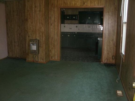 Exterior Features: Two stories home with blue siding, home has excellent curb appeal. Yard is small but is clean and has been well kept. Siding: Good condition. Windows: Intact. Soffits and Eaves: Intact. SF:(Lot) Unknown. SF (Home) 1586 Patio/Porch: None. Roof: Asphalt Shingle. Driveway: None. Interior Features: Home interior may need some cleaning but is in otherwise good condition. Most rooms are carpeted or have nice hard wood floors, Bathrooms appears to have been a remodel and looks very nice. Living Room: Carpeted, wood panel walls, good condition. Dining Room: Hard wood floors, room is also in good shape. Kitchen: Vinyl floors, cabinets, countertops and sink are all intact. Bathroom: Tub, toilet and sink are in place. Bedroom: (3) Rooms are all in good condition; carpeted and clean, rooms include closet space. Basement: Unfinished. Mechanics: Hot Water Tank and Furnace. Garage: None.