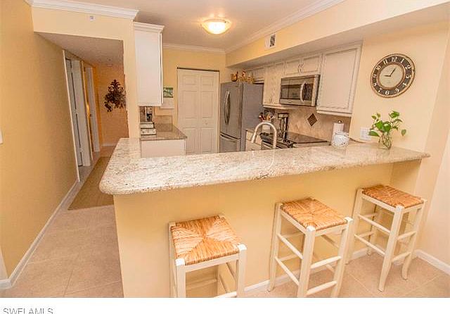 Absolutely Impeccable!!! Move In Ready, 1ST Floor, 3 Bedrooms 2 Bath, END UNIT in Napoli. Need a GARAGE??? Single Car, Detached, (2A) is AVAILABLE to purchase for $17K!! Gorgeous, Updated Kitchen with Granite Countertops, New Cabinets and Stainless Steel Appliances. Tile throughout with New Carpet in the Bedrooms....Crown Molding and Extra Features include, 5 Fans, Plantation Shutters, on all windows, as well as the sliding doors, and Decorative Lighting. Napoli is gated with Resort Amenities that include Resort Style Pool, Billiards, Bar & Social Room, Library, Fitness, Tennis, and Volleyball. Low Fees!! COME LIVE the LIFESTYLE at Napoli.....