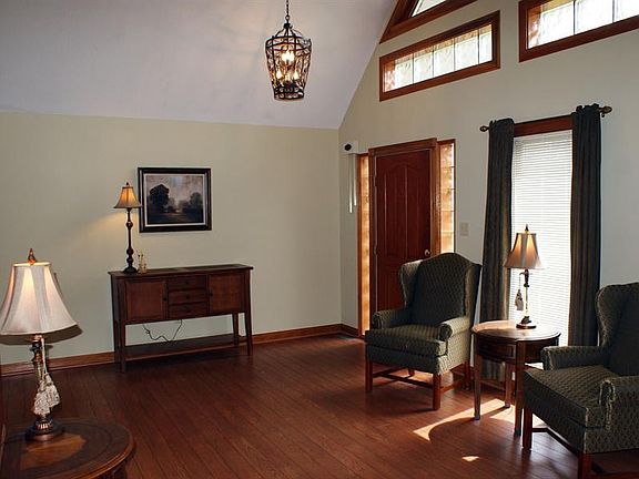 Looking for the country feeling with city conveniences? Then, this is the home for you! Full brick ranch with walkout basement on 2.5 acres. Stocked lake with island and bridge! The front door opens to a large open foyer with lots of windows, wood floors and view of loft. Powder room and office/4th bedroom with open ceiling to unique loft room are just off of the foyer. The huge open kitchen features hard surface counter tops, new appliances, walk-in pantry, skylight and planning desk. The dining area has large bay window and is all open to the great room with brick wood burning fireplace and office/bonus area that opens to beautiful deck with lovely views of the huge backyard and beautiful lake. The 3 large bedrooms feature large closets. The master suite has his and hers walk-in closets, full bath with access to private deck. The lower level features a nice sized family room with a brick wood burning fireplace with electric logs plus 3 near-finished rooms, one is a rec area, One is a laundry and the other could be used for workshop. The family room opens to a covered patio. The oversized 3 car tandem garage is great! Per Owner: recent updates include appliances, fixtures, flooring, roof, furnace and air and water heater - Hurry - won't last!