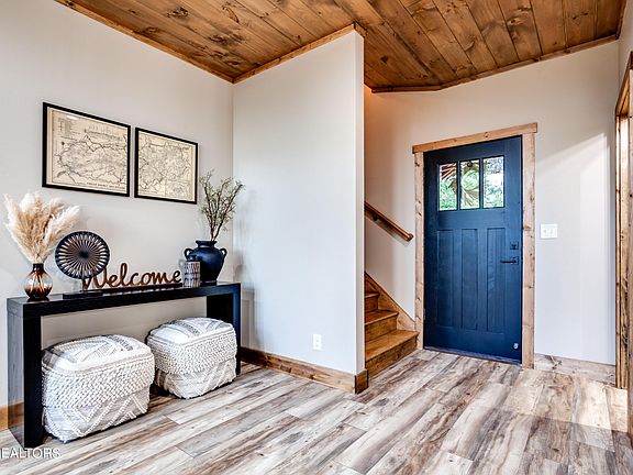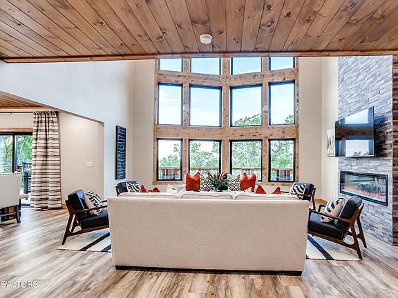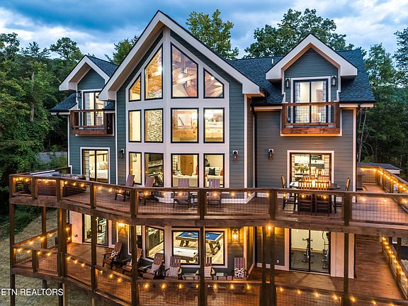 BRAND NEW & TURNKEY FURNISHED CABIN IN THE HEART OF THE HIGHLY DESIRED & VISITED SMOKY MOUNTAINS. Walking in the door, you'll be in awe of the T&G ceilings, scissor trusses, floor to ceiling fireplace & windows. The main level features an open concept in the oversized living room, well-appointed & fully-stocked kitchen & dining room, a master suite w/ bath & a twin over twin bunk area. Upstairs you'll find a spacious master suite w/ a stunning bath & two more rooms, full bathroom & loft w/ sitting area. Downstairs you'll find a wet bar & open game area, an oversized movie room, workout area, kids play area, double twin over full built-in bunk area & a full bath. Out back, the cabin features two expansive decks w/ a hot tub, an irresistible fire pit table & Adirondack chairs great for relaxing & taking in the views. This cabin is conveniently located between Pigeon Forge & Gatlinburg, so just a short drive to all of the local attractions.