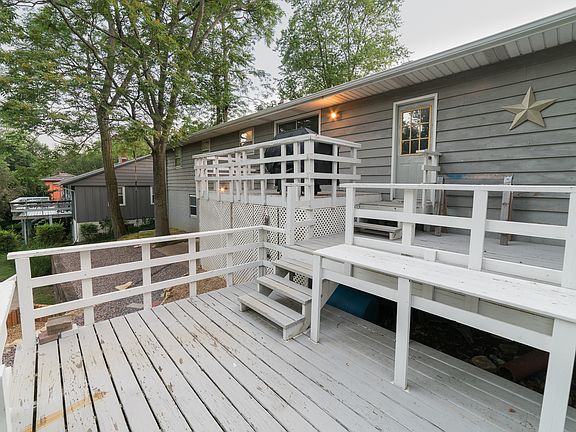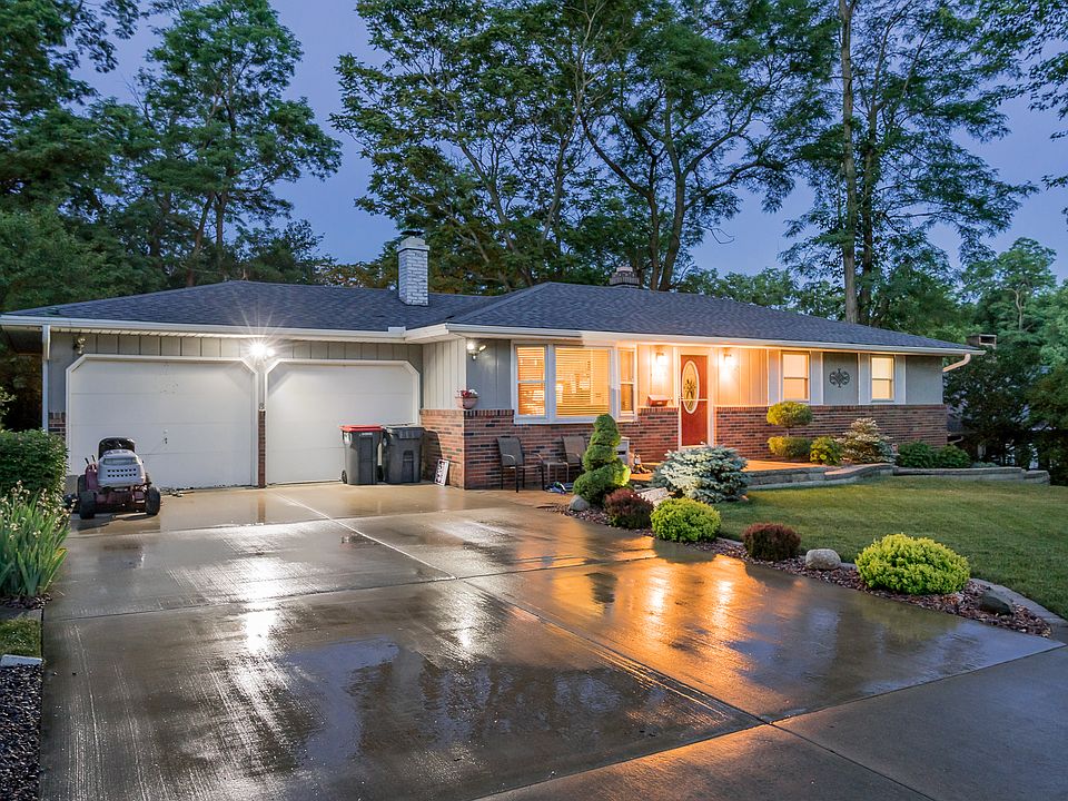 Beautifully newly landscaped Sunset Hills ranch in quiet neighborhood w/ large, private wooded yard. Nice open floor plan with fully applianced kitchen, large fireplaced living room and patio doors that open to nice 3-tiered deck. Large walk-out lower-level family room w/ oversized fireplace and 4th bedroom with half-bath. HE washer/dryer. Many updates: New roof & gutters ???17, water heater ???16, geothermal heating & cooling ???12, driveway & garage floor ???12. 2-car garage with in-floor heating. Walk to parks, schools, lakes, fishing & restaurants/shops. Home warranty with full offer.