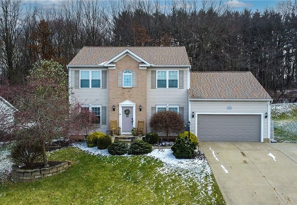 We're so excited to bring you this beautiful home! Situated in a fantastic neighborhood, this move-in-ready colonial features four bedrooms, 3.5 bathrooms, a first-floor laundry, and gorgeous Brazilian wood flooring! Upon entering, you are met with the lovely foyer leading to the formal dining room and living room. The dining room features elegant hardwood floors and tray ceilings. The living room is a versatile space with laminate flooring and French doors connecting to the family room. The family room features a gas fireplace and is open to the eat-in kitchen. The eat-in kitchen features an additional dining area with French doors opening to a newly painted deck. The kitchen boasts Quartz countertops, an oval island, plenty of cabinet space, a pantry, and a coffee bar connecting to the dining room. The 1/2 bath comes with a single vanity. Completing the first floor is the laundry room with a wash tub and storage space. Upstairs, you'll find FOUR wonderfully sized bedrooms. The master bedroom features vinyl flooring and access to its own full bath. The master bath has a nicely sized vanity, jetted tub, tiled shower, and a skylight. The other three bedrooms also have walk-in closets as well. The hall full bath has tile flooring, a single vanity, a tub/shower combo, and a skylight. The partially finished basement features a LARGE rec room with Berber carpet and a wrap-around bar. The bonus room has a wet bar with a sink and has access to the additional full bath. The exterior is equally as impressive! The front exterior boasts a paved driveway that leads to a two-car attached garage with extra parking space on the side. The backyard features a large deck. Plus, the roof is newer as well (2024). Don't miss your chance to see this spectacular home; schedule your showing today!