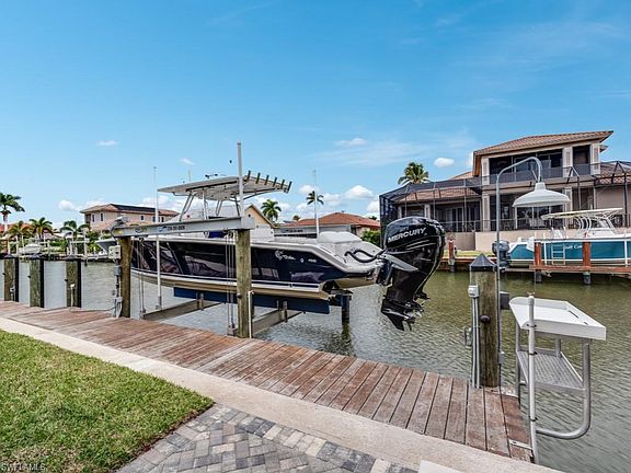 This extremely well maintained home is only five houses from Naples Bay, with easy no-bridge exit to the Gulf. The seawall was re-enforced in 2017 and new dock pilings and a 20,000 lb boat lift were installed. Adjacent to the dock is a new pavered walkway, patio, and outdoor kitchen, with a 250 gallon gas tank installed underground to supply the grill. The screened pool enclosure, installed in 2017, with beautiful wood paneled lanai ceiling, fans, and speaker system allows the best of indoor/outdoor living. The roof, the A/C system and the duct work were all replaced in 2018. The electric storm shutters were replaced in 2014, a new refrigerator in 2019 and a new whole house water filtration system added in March of 2019. See the feature sheet for all the recent updates to this beautiful ranch home in one of the most sought after areas of Naples.
