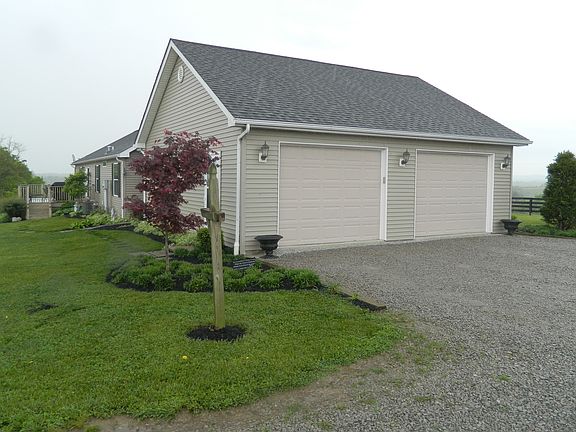 Retiring senior couple downsizing and offering beautiful Garrard County Hobby Farm for sale by owner. Three bedroom 2 bath ranch on 16.775 acres located close to Richmond and Lexington KY. 40x80 Metal barn with sheds on both sides, stalls, hot and cold water, tack and feed room in the barn. Land is all fenced and ready for your horses or cattle, including automatic drinkers in fields. Beautiful manufactured home custom built with 2 x 6 walls, extra insulation and professional landscaping that is move in ready. 3 bedrooms and two full baths with a spacious master bath and walk-in closet. Open floor plan with great room and dining + eat in kitchen with an island and bar top. Large attic storage over the garage. All appliances will stay with sale of home. The 29x28 garage has two 10' garage doors on electric openers. Home is completely wired for generator power. Additional 16.764 acres of neighboring farm land available for purchase. Secluded farm settings minutes from Interstate 75 don't come along often! Asking $264,900. Call Lois @ 859-327-0505 for a private showing.