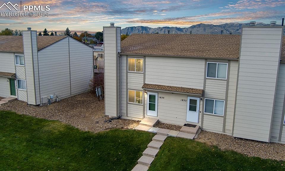 Welcome to your dream starter home! Walking in the front door, you will notice the expansive green lawn which you won’t have to mow because the HOA takes care of all that for you! AND, the HOA includes trash, snow removal, exterior maintenance, roof, and more! While this location is in the heart of Colorado Springs, it is also in a small unincorporated area. What does that mean? Yep, you guessed it! Both your insurance premium, and unincorporated taxes are a tremendous benefit for you! This corner/end townhome provides peace and plenty of parking. Inside you will notice the massive kitchen! Chefs will love this large, open kitchen & it’s even big enough for a portable island! The large pantry even features custom storage for all your spices! Opening to the living room you will enjoy continuing conversations with loved ones or watching your favorite show while cooking. The living room features a WOOD BURNING, stone fireplace with mantel and a beautiful bay window. Also on the main level is a convenient, contemporary half bath. The back door from the kitchen opens to your private, enclosed patio and an oversized shed for additional storage. Upstairs your master retreat features TWO closets, and plenty of light. Two additional bedrooms overlooking the front range, great views of Pikes Peak & a roomy full bathroom with shower and tub complete this level. Brand new paint in neutral colors, and BRAND NEW flooring! Brand new roof too! Idyllic setting for pets and children to play, ride bikes, play ball, and Evans Elementary is located just across the street. Nearby walking trail to East Ridge Park and the dog park. Near the fire station and shopping center with Planet Fitness. Plenty of parking for all your guests. This is a beautiful home with easy proximity to the main arteries of Colorado Springs including the Powers corridor with restaurants, shopping, parks. Easy commute to Peterson, Schriever, and Fort Carson military bases! Better hurry, because this one won’t last!