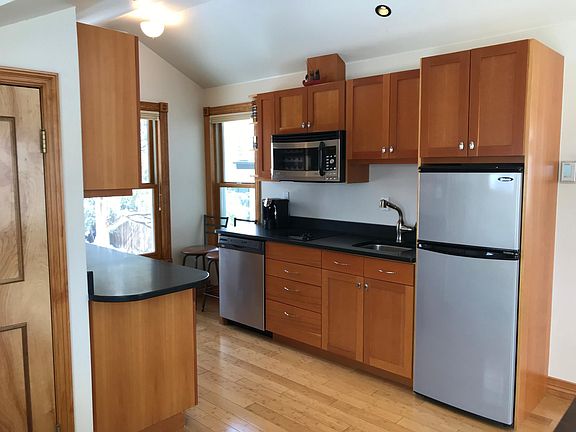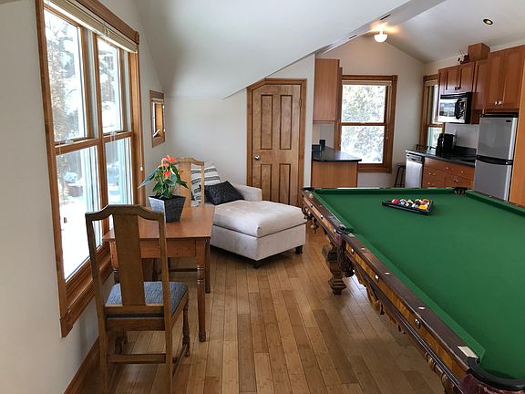 Charming suite in the heart of Boulder 3 blks from Downtown Pearl Street, fine dining, shopping, nightlife, short walks from hiking, biking, Boulder Creek, CU, & bus station. This unique & bright / open studio above a detached garage has large windows in all directions & a mountain view. The space has a private exterior entry and the building is a separate structure from a home on the property. On-site parking, fast WiFi, Queen adjustable bed, Hybrid Therapeutic Mattress, a STUNNING antique pool table, a lovely kitchen, couch, & chaise. Bath w/ tiled walk-in shower. Great for extended business travel, house-hunting, & those much-needed longer term escapes! This is a monthly rental equipped like a short-term rental. Minimum 30 day stay, maximum 1 year. Very cozy, with interesting roof lines throughout, large windows in all directions (with privacy shades), bamboo floors, tiled entry & bathroom. At 538 square feet, it is also large enough to have a few guests, play some pool, relax on the couch and watch the view, the game, or have your next important meeting (real or remote). The kitchen has granite countertops, two-burner electric cooktop, dishwasher, disposal, combo convection/microwave, 3/4 sized fridge, and lots of cabinets, including cookware, utensils, plates / bowls/ glasses, mugs, cocktail mixer, etc. Also: Toaster, Tassimo Coffee maker, blender. For A/V: High-end in-ceiling speakers can be used for the 50" flat screen SmartTV (ROKU) & stereo (WiFi included). With radiant floor heat and a minisplit AC/Heater, there's no worries about any shared ventilation. Laundry is in the garage space below the suite, accessed via keycode. Iron, ironing board, clothes steamer available upon request. This rental rate is for stays of 3 or more months. Fully furnished, equipped like a short-term rental (airbnb). To check availability and for stays less than 3 months, contact me to discuss. 1 Parking space on-site. Utilities are included. (water, electricity, wifi internet). Bedding / linens / soap / toilet paper / shampoo / conditioner are provided. Laundry (Washer / Dryer) is available in the garage space below the studio (separate exterior entry in shared space). No smoking No pets