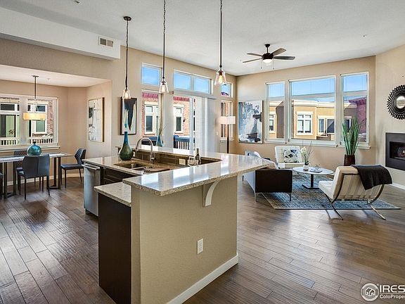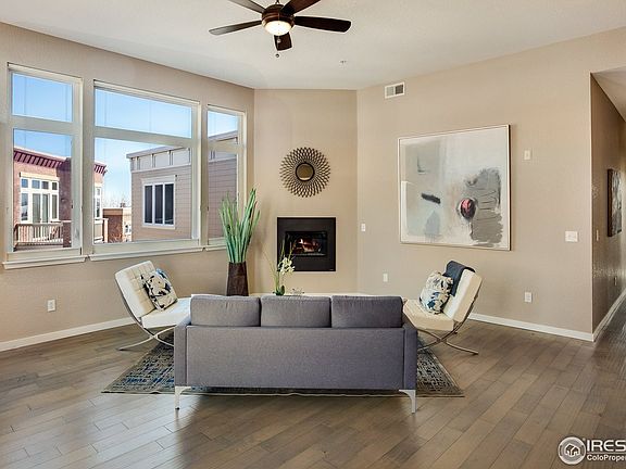 2 car underground parking GARAGE within the garage. Soaring 10-foot ceilings + handsome wood floors play host to 3 beds + 2 baths in this elegantly modern North Boulder condo. A chic kitchen featuring granite countertops + stainless-steel appliances flows into an intimate dining space set against a grand window. A commodious living room is flanked by walls of expansive windows that infuse the space w/ an air of breezy tranquility + offer access to a spacious deck surrounded by striking views of the Foothills. A classic tray ceiling sits above a serene master suite illuminated by a wall of oversized windows. Expansive master bath boasts gorgeous tilework + a luxurious soaking tub. Sunlit 2nd bedroom features lofty ceilings while the 2nd bath mirrors the chic sophistication of the master. Storage locker included. Located just a quick bus ride from downtown Boulder, this condo offers unrivaled access to the vast array of indoor + outdoor entertainment options North Boulder has to offer.