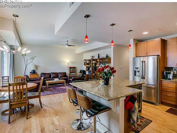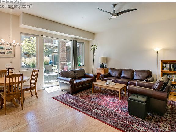 Stylish lock-n-leave luxury 1 level home w/granite counters & gorgeous tiles, wood floors & high ceilings, fenced back yard & lg patio. Enjoy foothills views from front patio surrounded by lush grasses & trees. NoBo Boutique Brick Building has 17 luxury condos 1/2+ mile to Amante coffee & cool cafe's. Trails abound. Elevator to garage/underground parking w/2 spaces good for handicap. Warm & inviting w/delightful natural light. Master w/sitting area, walk in closet, fab 5-piece bath w/jetted tub.
