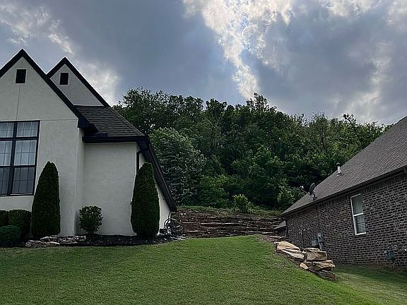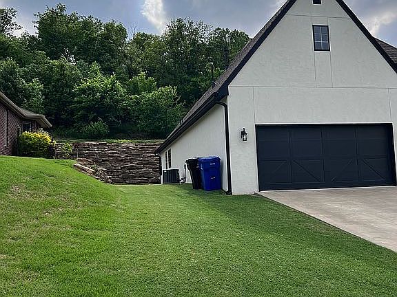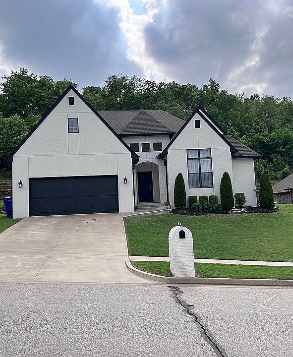 Elegant white stucco house on a hill! This home is in an ideal location with multiple grocery, retail and convenience stores within half a mile. High School, Elementary school and early childhood schools within a mile. It also has two different highway accesses to HWY 51 within one mile. Some features of this home are as follows: - Beautiful white stucco with black trim that makes the home stand out amongst others. - Granite countertops throughout as well as crown molding. - Large, black tile floors - Striking modern grey scale color scheme throughout. - Vaulted ceilings in most rooms with exposed rafters in living room. - Multiple windows looking out on the green belt behind home! (Privacy!) - Breathtaking views east to the river and North past the Cherokee casino. - Stainless steel appliances - Large Master Bath with dual sinks and soaking tub. - Large master walk-in closet that attaches directly to laundry. - Walk-in closets in all Bedrooms. - Indoor AND Outdoor fireplaces!!! - Tankless hot water heater. (Endless Hot Water!) - Recessed LED lighting - Hot tub and Full set of custom Christmas lights included in sale of the home. - Recessed storage in garage as well as high garage ceiling for added storage space. -Owned security system to be included if desired - Extra decking in attic for additional storage capacity. - Wonderful neighborhood with HOA protected homes and well maintained common spaces. This is a truly spectacular home priced right to work directly with buyers. Preference to work directly with buyers. Showings will begin starting at 3p.m. on 5/24/22. Offers currently being accepted.