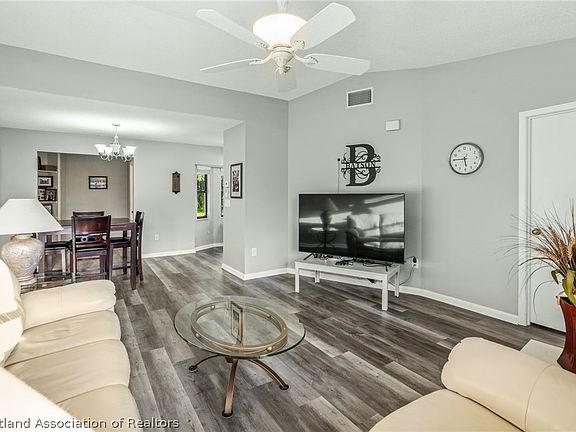 Impressively updated and spotlessly clean home ready for new owners to enjoy located in the highly popular neighborhood of Avon Park Lakes in Avon Park, FL! 3 bedrooms on a split floor plan, 2 spacious updated bathrooms, and a 1 car garage! Solid concrete block construction freshly pressure washed home with durable vinyl plank flooring and modern, trending wall shade of gray throughout the interior of the home. 11' high vaulted ceilings welcome you into central main portion of the home, which is open to the dining area. The back hallway area features custom built-in bookcase/shelving and access out to the back open patio. Galley style kitchen boasts all new Stainless Steel appliances, Epoxy countertops, white cabinetry, and an 8'x8' breakfast nook with bay window overlooking the large private back yard (the property is 4 'Avon Park Lakes lots' combined in 1 parcel). You will adore the Owner's Suite complete with a huge 8'x3' well organized walk-in closet and fully updated ensuite bathroom! Both secondary bedrooms of the home include generous amounts of walk-in closet space, lighted ceiling fans, and window treatments. Spacious 13'x14' garage with washer & dryer hookup present, updated water heater, and updated HVAC system in 2021! Metal roof estimated to have been replaced in 2010 per the seller. City water & septic tank utilities. Wonderful neighborhood, HOA Fees or Special District Fees do not apply to the residents! There is a clubhouse on the south side of Lake Olivia only a few blocks away from the home owned by the Avon Park Lakes Association that hosts the Farmer's Market and other planned events throughout the year.