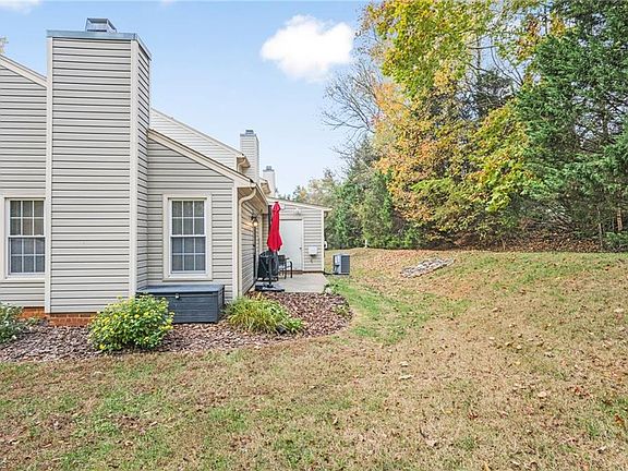 This immaculate one-level townhome is conveniently located in the Crosswinds neighborhood. Light and bright, this end-unit property features gorgeous hardwood floors, a large open concept living/dining area with vaulted ceiling and fireplace, and neutral paint throughout. Primary bedroom has double closet and ensuite bath. Smart floorpan includes a large kitchen with stainless steel appliances, guest full bathroom that is accessible from the second bedroom and the main living area, and a separate laundry room. Because of its location in the community, the back patio area and side of the home feel private and natural. Located just minutes to all that Winston Salem has to offer, amenities include 2 assigned parking spaces, neighborhood pool, and water/sewer in HOA dues. Schedule your showing today!