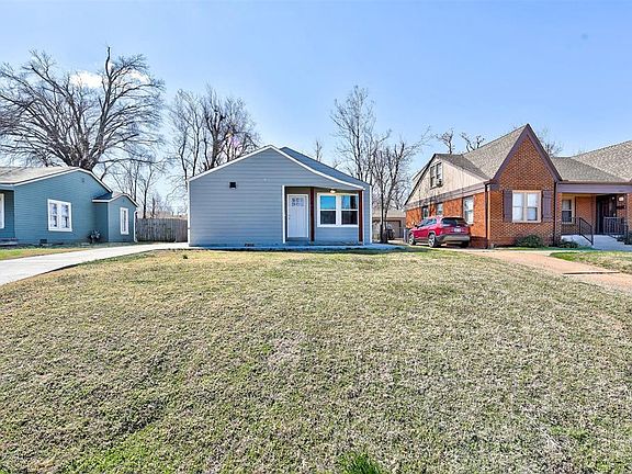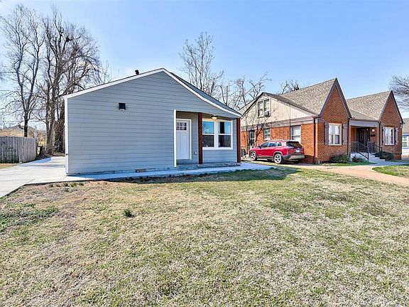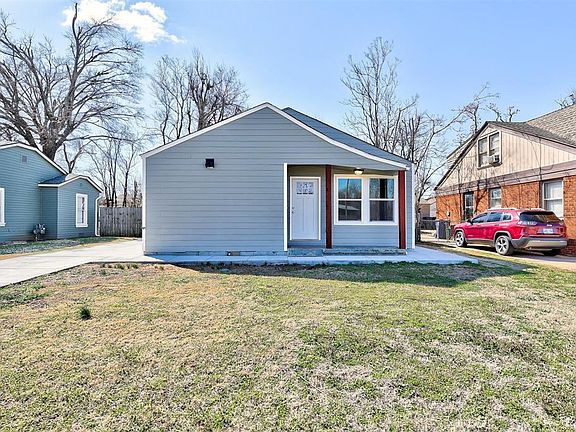 Dive into the heart of NW OKC with this exquisitely remodeled 2 bedroom, 1 bath home, a perfect jewel for your investment crown. It's a spacious sanctuary where modern design meets functional elegance. The kitchen is a masterpiece of style with its eye-catching red vintage fridge, set against a backdrop of herringbone tiled backsplash and expansive quartz countertops. The 5-burner gas stove and trendy shaker style cabinets, adorned with sleek stainless steel pulls, add to the culinary allure, centered around an impressive waterfall island.
