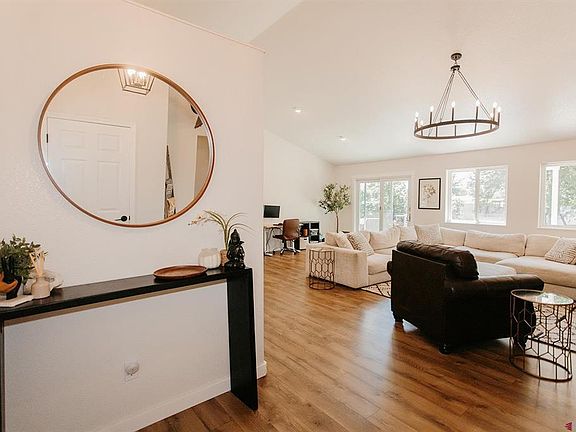This beautifully remodeled Byler built property makes an immediate first impression, with sharp and attractive white exterior and black trim, beams with pride of homeownership on the corner of Otter Pond Circle. Inside this home, you will find a warm and welcoming entry which flows into the open concept living, dining, work, and kitchen spaces. High ceilings and excellent interior color choices bring in the natural light, making this space fresh. The kitchen features newer appliances, with a dining area and bar seating. Living room is large enough to utilize part of the space for work or play, working out, and other various uses. On the right side of the home is the remodeled laundry, with a ship lap feature wall, plenty of storage and the included washer and dryer. The master is also on this side of the home. Very large and inviting, the master also features access to the covered back patio and yard, and has its attached walk-in closet and bathroom with separate shower and soaking bath tub. On the other side of the home are two other well appointed bedrooms and the full hallway bathroom.The home also features in-floor-heat! Out to the back yard, you will find a concrete patio and a lovely back yard space which backs up to Cottonwood Elementary School! A wonderful feature if you do happen to have anyone needing to be close to the school, and equally great if you like not having nighttime neighbors in the back! Make this your happy home today!