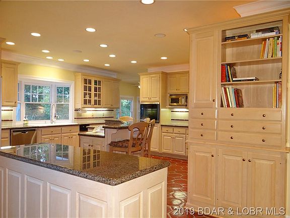 ABSOLUTELY NO BETTER VALUE AT LAKE OF THE OZARKS! Price Reduced by $450,000! Very special family home custom built by Thomas Construction. Spread Out with Wide Open Spaces, this home is so comfortable & accommodating to the family groups that typically gather here to relax, enjoy, spend time together & build memories. The extra spacious kitchen features 6 brnr gas cooktop, double ovens, separate Sub Zero refrigeration & freezer. Granite counters & custom all wood cabinetry thruout kitchen, mud room & baths plus Hardwood floors, concrete stamped, and slate tile for ease of care. The fantastic study features built-in shelving & desk, vaulted ceilings, and the master suite is airy & spacious - fit for a king. Both covered and open decks enjoy the best of southeast lake views to the channel but the dock is in a nicely protected 120' inner bay of Skinny Dipping Cove. Privacy abounds for your guests on the lower level. Plenty of room to convert the shop to a fifth bedroom. Dock included.