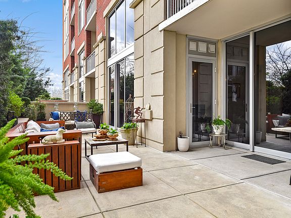 The most incredible outdoor space abounds this stunning flat! Floor to ceiling windows and doors lead to an enormous private terrace space designed for dining, entertaining, or enjoying quiet evenings. Perfect for those with pets or those that want to enjoy the outdoors in a low maintenance modern setting. Private access to the building amenities from your outdoor terrace! White kitchen with beautiful quartzite countertops, large upgraded appliances, wine refrigerator, oil-rubbed hardwood floors, and lots of closet/storage space.Master suite with a walk-in closet, double vanity master bath, and tons of natural light. Cozy den off the kitchen makes the perfect office or family room in addition to a large secondary bedroom. Completely move in ready with today's look. This sought-after building is just steps from the BeltLine, shopping, restaurants, and more! Great walkability and building amenities including BeltLine access, guest suites, pool, gym, outdoor kitchen, dog run, gorgeous clubhouse, and large saltwater lap pool. Association fee includes internet, trash, gas, and 24 hour concierge.