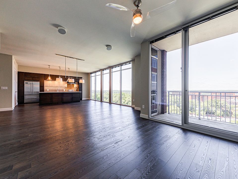 Come home to panoramic floor to ceiling Western views from this immaculate 2 bedroom, 2.5 bath plus den (largest two bedroom floor plan) at The Brookwood, Atlantaa^??s only LEED Certified condominium residence. The entire living, dining and den space has oil hand-rubbed wide hardwood floors. There are two spacious private balconies, one off the Master Bedroom, the other off the living room. In this open floor plan the kitchen area is directly adjacent to the living/dining space with a large granite island serving as the centerpiece.