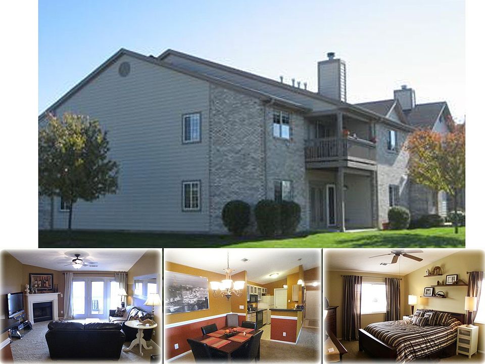 Modern Styled End Unit w/Pond View! The Marvelous Great Room has an impressive soaring cathedral ceiling, gas starter fireplace, custom mantle, luxury carpeting w/memory foam pad, deck access & Dining access! This Galley Kitchen features stylish above/below cabinet lighting, a convection smooth-top oven, KITCHEN-AID dishwasher, sensor-cook microwave & refrigerator! The Owner Suite offers a view of the pond, 2 windows & a walk-in, organized closet. This LUXURY bath has a custom vanity w/new granite counter top, tile floor plus a new walk-in style shower w/ surround & glass door! The Common bath also has similar updates! NICE!!! The Guest Bedroom also has premium plush carpeting & an organized closet! All within minutes of: Wright Patterson, I-675, Hospitals, & the popular Greene shopping plaza! Garage & extra storage! Exercise, Pool, Tennis, Water, Ext. Maint. & Snow Removal all included in the Assn. $183 Fee! 1121 sq.ft.