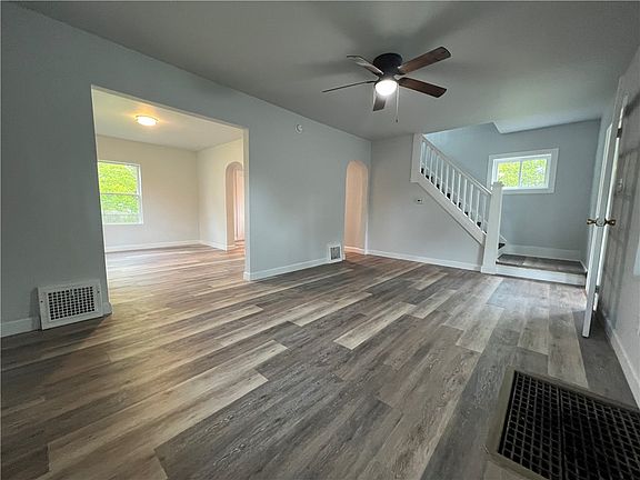 Want to live in the city but don't want to be right next to your neighbor? Come call this newly remodeled home sitting on a triple lot yours! Featuring all new luxury vinyl flooring, paint, kitchen cabinets, countertops, and complete electrical rewire. This home has three spacious bedrooms, each with a small walk-in closet. Full-bath on second floor. First floor offers excellent living space, dining room, kitchen and a front sunroom area. Updated/brand new windows throughout and Central A/C. With great indoor living space just over 1,800 S/F, this home is also being sold with the two neighboring lots, totaling a little under half an acre (.3795) of outdoor space. You will have a long driveway that leads to a small detached one car garage that sits towards the back of the property. Home assessed with 2 full bathrooms but one is inactive, located in the basement.