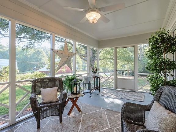 Picturesque setting surrounds this charming & spacious historic ranch home in the heart of Milton! Framed in centuries old oak trees, enormous magnolias & large blooming camelia and azalea bushes, this light filled home has an open and very livable floorplan. Thoughtfully renovated with new flooring, ceiling to floor double pane windows, fresh paint, new lighting, stone countertops and updated kitchen & baths. Three outdoor living areas beacon you to enjoy the views overlooking a private, 1+ acre lush green lot or garden in an irrigated sunny level area with potting shed ready for you to try your hand in growing fruits and vegetables. Rock steps lead you to the welcoming screened front porch & lowering your blood pressure as you sit and sip on a glass of iced tea or lemonade while gazing at the historic red barn across the way! Renovated chef's kitchen comes complete with stone counters, gas range, white cabinetry, luxury vinyl plank flooring and a cozy fireside keeping room. Owner's suite features a wall of windows and a french door opening to large private deck (perfect for relaxing at the end of a long day), an oversized walk-in closet and an ensuite bath with custom cabinetry, stone countertops and tile floor. Spacious living and dining area has windows on two sides bringing the outside in. Hardwoods throughout main living areas & in the two generous sized secondary bedrooms. Large bright separate laundry room. Home is located at the start of the Milton Trail providing walking/jogging/biking/horseback riding for miles, Shopping/Dining & Entertainment is close by -4 miles to Downtown Alpharetta & Crabapple, 5 miles to Avalon! Award Winning Schools!