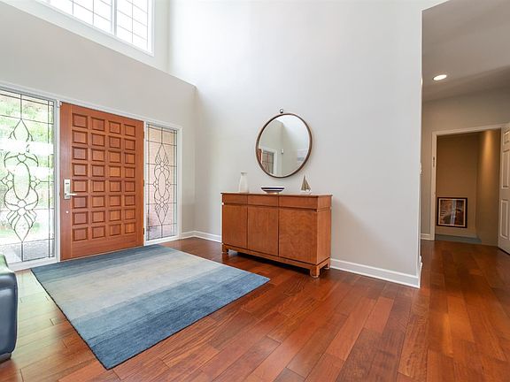 This impressive, open concept ranch offers all the I WANTS. From voluminous, two story ceiling lines to gorgeous mahogany wood floors throughout, nothing has been missed. The Entry, with leaded glass side lights, opens to the spacious Living Room with full wall of windows which look out to the deck and park (no one behind you). The gourmet Kitchen is equipped with cherry cabinets, stainless appliances, granite counter-tops, and walk-in pantry. The large Family Rm has a gas fireplace flanked by shelving and sliding door leading to deck (22x16). The Master Bedroom Suite offers His and Her walk-in closets, beautiful en-suite bath and door to deck. Two more bedrooms, both with walk-in closets, feature beautiful ceiling detail. The lower level offers a recreation room, an office area which could be a 4th bedroom, and loads of unfinished area for accommodating a home theater, exercise rm, hobby area, etc. HMS warranty offered.