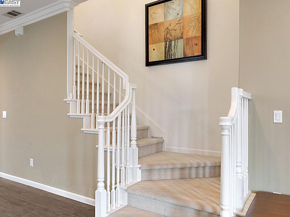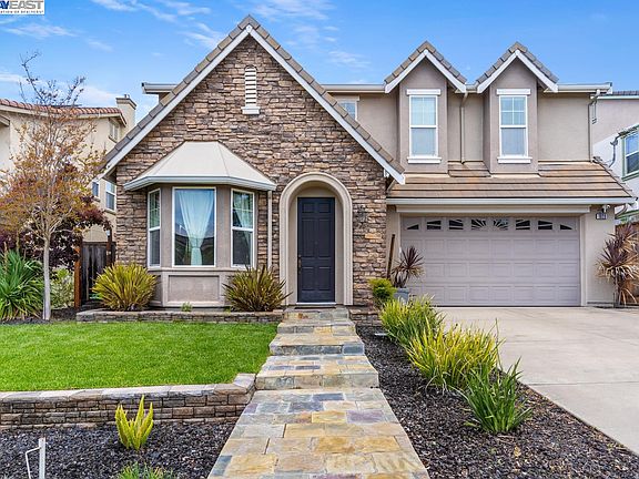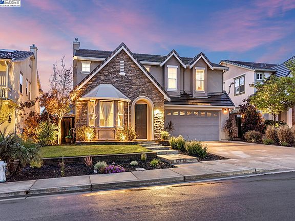 OPEN SAT & SUN 1-4PM: This beautiful Monterosso home is conveniently located close to Diablo Vista Middle School, and Creekside Elementary School, and offers 3 spacious bedrooms and 2 1/2 bathrooms with oversized upstairs loft converted to a 4th bedroom. Generous sized primary suite with with raised ceiling, sunken tub and shower stall. Downstairs, office suite or optional 5th bedroom. A very spacious and open floorplan, 2,628 sf of living space with new laminate flooring and crown moulding downstairs, berber carpeting upstairs, new professional gas cooktop in kitchen, newer electronic fireplace insert, bathroom bidets, whole house attic fan, dual zone HVAC, newer 50 gallon water heater, newer garage door opener, new smart switches, thermostats, and sprinkler drip systems, SimpliSafe alarm system, 2 car attached garage plus inlet (half a car length) for additional storage, and oversized backyard area with covered gazebo and outdoor lighting, great for entertaining!
