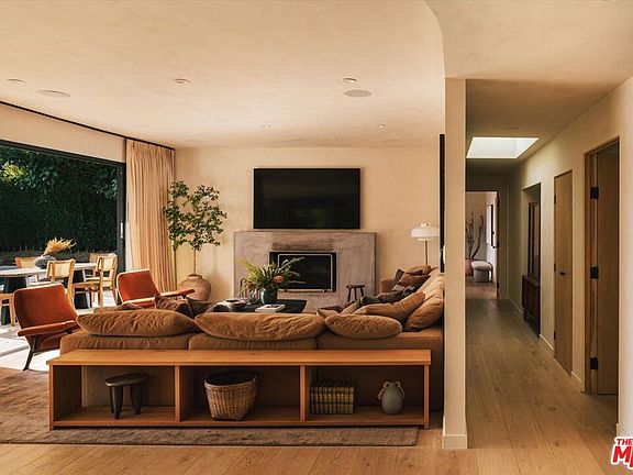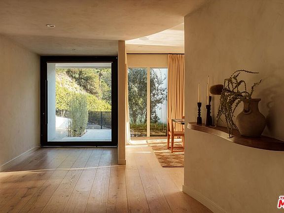Privately positioned at the crest of the prestigious Rising Glen enclave, this refined hillside sanctuary commands sweeping views over Sunset Plaza, the cityscape, and the Pacific Ocean beyond, offering a rare sense of tranquility high above it all. Framed by lush natural surroundings and set well above the street, the residence enjoys a peaceful, elevated vantage point that feels worlds away while remaining moments from the iconic Sunset Strip. The home has been thoughtfully reimagined with a curated eye for timeless design, blending elevated finishes with warm, organic materials throughout. Sun-filled interiors are anchored by a bespoke chef's kitchen featuring custom cabinetry, integrated appliances, and a sculptural stone island that seamlessly connects to the living and dining spaces. Skylights and expansive walls of glass invite natural light from every angle, enhancing the home's open, airy atmosphere and drawing the outdoors in. Floor-to-ceiling sliding doors open to an expansive terrace designed for effortless indoor-outdoor living. A resort-style pool and multiple lounge areas create a private outdoor oasis ideal for entertaining or quiet moments of retreat, all set against a dramatic hillside, city, and ocean backdrop. Thoughtfully composed and exceptionally serene, 1820 Rising Glen offers an elevated living experience in one of 90069's most coveted hilltop settings overlooking Sunset Plaza.