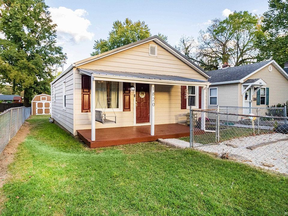 Charming, turnkey home located in the heart of Evansville's westside. This updated home boasts original hardwood flooring, remodeled bathroom, open floor plan, front and back porch areas and fenced in yard. Large, lofted storage shed added in 2020. Gutters and downspouts 2023 Roof 2020