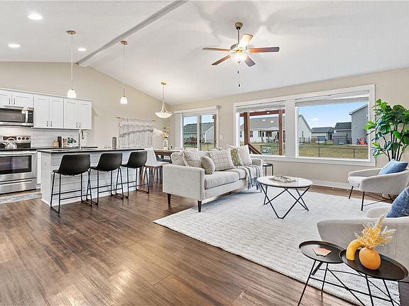 Welcome to this stunning four-bedroom, three-bathroom ranch home where modern elegance meets comfort. The open floor plan seamlessly connects the living, dining, and kitchen areas, creating a perfect space for gatherings and entertaining. The master suite offers a private oasis with a spacious bathroom and closet. Downstairs, the large finished basement provides versatility with a spacious living area and a bedroom and bathroom. Enjoy the convenience of a main-floor laundry and attached three car garage. This home combines style and functionality.