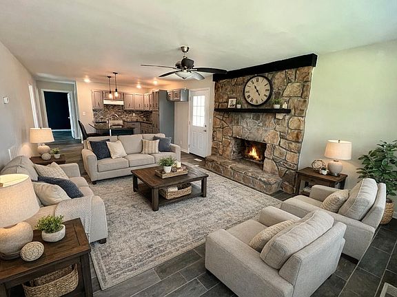 Granite islandLarge stone fireplaceOpen floor planPeaceful retreatWell-designed kitchenGranite countertopsSpacious master suite