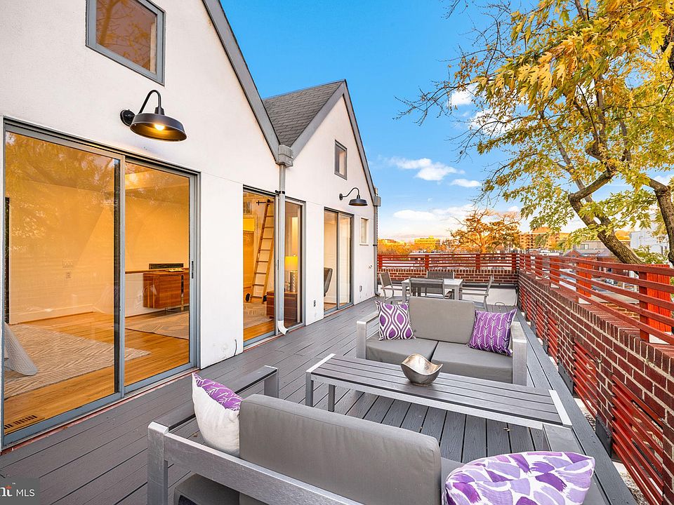 Sophisticated 2BR/2BA bi-level Dupont condo offers a bright, airy layout with modern upgrades and upgraded amenities. The open-concept main level features a wall of windows, hardwood floors, recessed lighting and a wood-burning fireplace surrounded by built-ins. The contemporary kitchen boasts quartz countertops, stainless steel appliances and chic grey cabinetry. Upstairs, the loft-style primary suite is replete with vaulted ceiling, abundant natural light and direct access to an expansive private roof terrace, perfect for relaxing or entertaining in a bucolic setting. Additional highlights include updated bathrooms, in-unit laundry, walk-in closets and a dedicated parking space. Ideally located just steps from countless restaurants, shops, and the Metro, an urban dweller’s dream comes true. Enjoy easy strolls to Rock Creek Park, Dupont Circle, Adams Morgan, the 14th Street Corridor and all downtown attractions. A true Walker’s Paradise with a Walk Score of 99.