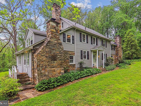 The Rawlings Mill House in Montgomery County sits on 9.24 acres. of lovely countryside in delightful Ashton, Maryland. The dining room of The Rawling Mill House is still standing from the mid-18th Century Colonial settlement era of the County's history. Located on a country road just before you approach the bridge over the Patuxent River into Howard County. Conveniently located to local shopping, amenities and major commuter routes The Rawlings Mill House is an unpretentious house but certainly not small with its 17 rooms and seven fireplaces. This home boasts massive exterior fieldstone chimneys. Main level of this home features seven rooms apparently constructed in several eras from the colonial to 1960s. Beautifully situated at the center of the house is the dining room which is said to be the oldest room in the house (circ 1768) and was probably the original log cabin which features a huge stone fireplace and exposed log and mortar walls. The newest addition to the house seems to have been constructed sometime between 1940-1960s is the huge family room which reflects the spirit of the house. Living room and family room There is no Historic designation on this property. The 2nd floor sleeping area features a light filled spacious owners suite with a stunning fireplace and private bath. Additional 3 large secondary bedrooms and full hall bath. The third bedroom has private bath. Attic level features 2 large dormered rooms plus full hallway bath. 4-bedroom 4.5 bath total in the main house. Lower-level basement/cellar with washer/dryer and major heating and A/C systems. Detached 2 car garage with attached accessory structure which can be used as a guest house/office/studio with separate heating system. Cottage provides a kitchenette, charming living area with a fireplace and 3 additional upper-level rooms and a washer/dryer. This home is beautifully situated on 9.24 acres just a short hike to the river.4-bedroom 4.5 bath total in the main house.