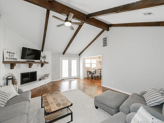 Beautifully remodeled 3 bedroom, 2 bathroom home! Has New paint, quartz counters, hardwood floors & is completely move in ready! Gas fireplace & recently replaced hot water tank. Duct work & HVAC were replaced in 2014. Great home to start a family. Great neighborhood & only 10 minutes to Tulsa Hills Shopping Center.