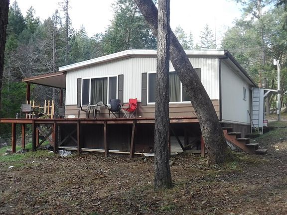 This 1979 Double wide is on 5.39 Acres on Jones Creek. It has tie downs and currently has a loan on it. The property has a nice circular drive and is private.The property is 2 miles from Grants Pass shopping but a world away. The Stove is certified and the HVAC has been checked and is in working order. The property needs a little TLC but is priced to sell quickly now that the tenant has been removed and the property is easy to show Buyer to do due diligence to the uses and condition of this property.