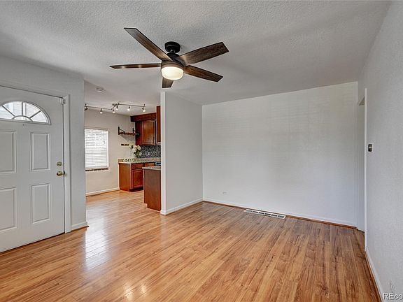 Motivated Sellers! Ranch style, three bedroom, one bath home with water-wise front yard landscaping, awaits your visit. The living room with its natural light and beautiful hardwood flooring is the first of two spacious living spaces. the hardwood flooring flows through to the main and second bedroom. The stylish, modern kitchen with stainless steel appliances and granite counter tops also is embellished with decorative tin ceiling tiles, a tasteful backsplash, track lighting and a perfect eat-in table area. The full bath is complete with a proper tub/shower combo. The convenient laundry room just off the kitchen includes a washer and dryer and lots of ceiling cabinets for extra storage. A second living space is the generous sized family room with gorgeous laminate flooring and sliding glass doors which open to the back yard. The third bedroom is a bonus with double-door closet and shelving. Separated at the back of the house this room is perfect for guests or an at-home office. The fenced in back yard and patio is tastefully designed with beautiful seasonal plants. There is a shed for all your outdoor tools and equipment. The side yard is ready for urban farming with plant beds for herbs and veggies. New furnace and AC 2021, new bathroom fan 2022, Landscaping 2022-23, new bedroom and living room fans 2024, new interior paint 2024. Sellers have also added a smart thermostat and security cameras. This home in Chaffee Park is zoned for gentle density allowing the addition of an ADU. Enjoy Zuni Park within walking distance, a quiet neighborhood park, great view of the city and tons of amenities and walking trails. Easy access to I-70 and downtown. Please come take a look.