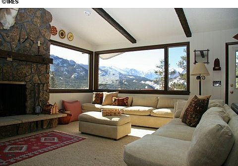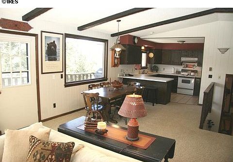 Well-maintained Windcliff 2nd Subdivision home with awesome Continental Divide views and quiet wooded setting. Large Great Room with living area featuring granite wood-burning fireplace, vaulted ceilings with wood beams, large window glass, adjacent large deck; dining area; and kitchen with bar area. A few steps down to lower level with 4 bedrooms including master, 2 additional bedrooms, and large 4th bedroom or family room with sliding glass door to patio. Vacation rental home option.