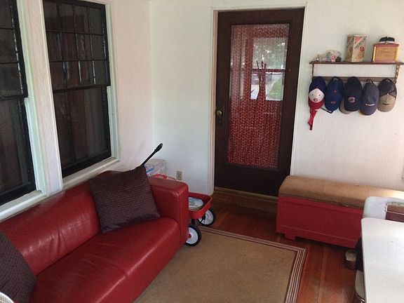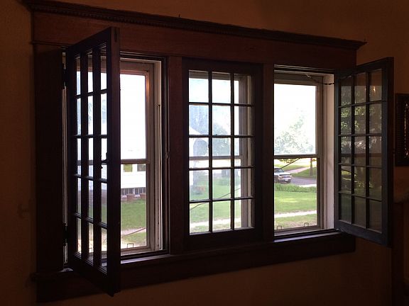 Charming 1 1/2 Story Home filled with beautiful original woodwork. Walk in to a sunny enclosed porch with hardwood floors. Open living room and large dining room. Master Bedroom with bench style window seat. Main floor bath with new walk in shower. French Doors in to an office/den or could be bedroom with closet. Updated kitchen with appliances included. Upstairs attic bedroom with closet. Covered deck off kitchen and partially fenced yard. Basement has great cabinets with sink to make a great work clean up area. Storage room, work bench, laundry and 1/2 bath. Attached 1 car garage. Newly blown in insulation, Gutter toppers front and sides, Furnace 9 yrs and serviced twice a year, Great location on a nice corner lot.