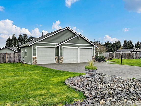 This beautifully maintained rambler offers 4 bedrooms plus a bonus office/den room! Designed with an open-concept layout and a split-bedroom floor plan for ultimate privacy. King sized primary suite w/ 5 pc bath, soaking tub and awesome walk in closet. The stunning kitchen features quartz countertops and all appliances that stay! The spacious 3-car 841 sq ft garage provides ample storage, power workbenches, shelves, plugs for welder & compressor & hot/cold water bib. Enjoy the convenient fenced 3/4 acres, dog run, 50amp RV parking, working electricity & heat shop/shed & 14X24 shed. 6 Yr old Roof, carpet, floors, water heater, appliances and more! Covered patio w/ propane bbq stub & fire pit. This house has it all & minutes to I5 and NO HOA!