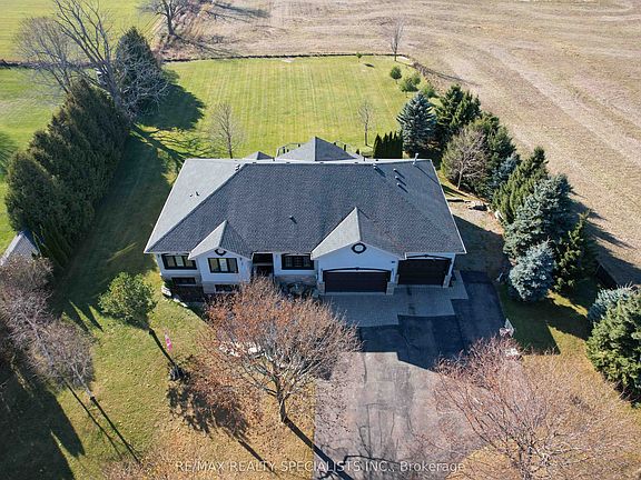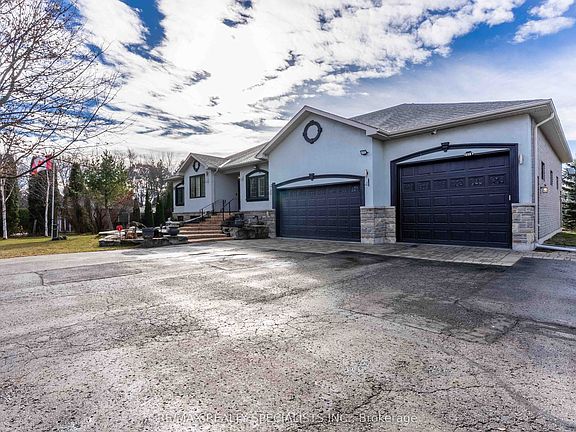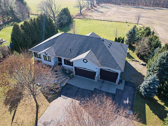 Set On A Serene 1.025-Acre Estate With Sweeping Scenic Views, This Custom-Built 2007 Bungalow Showcases Exceptional Craftsmanship And Timeless Luxury. The Main Floor Impresses With 9-Ft Ceilings, Rich Hardwood Flooring, Elegant Pot Lighting, And Refined Finishes That Elevate Every Space. The Gourmet Chef's Kitchen Features Premium Appliances, Custom Cabinetry And A Spacious Eat-In Area Designed For Both Casual Dining And Elevated Entertaining. The Master Suite Offers A Private Sanctuary Complete With A Spa-Inspired Ensuite, Featuring A Jacuzzi Tub, Steam Shower, And Heated Floors. The Lower Level Continues The High-End Feel With 9-Ft Ceilings, A Full Bathroom With Heated Floors, Two Generously Sized Bedrooms, And More Than Half Of The Basement Left Open As A Customizable Canvas For A Theatre, Gym, Or Entertainment Lounge. The Backyard Boasts An Expansive Deck With Glass Railings, Perfect For Summer Enjoyment, Scenic Views, And Unforgettable Sunsets. Nearly $120K In Upgrades Ensure Modern Comfort and Sophistication Throughout. Car Enthusiasts And Hobbyists Will Appreciate The Expansive Heated 4-Car Garage, Boasting Impressive 14-Ft Ceilings And The Flexibility To Double As A Workshop. Offering Elegance, Privacy, And Endless Potential, This Remarkable Residence Is The Perfect Blend Of Luxury Living And Functional Design-An Extraordinary Opportunity For The Discerning Buyer.
