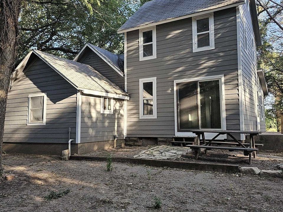 Looking for a secluded home site. This is it located on nearly 5 acres on the little Arkansas River. 2 bedroom, 1 and a half bath. New siding, windows, plumbing, wiring, flooring. New roof Seller will finish kitchen ceiling and mud room floor unless buyer prefers to do it themselves. This home is sitting on the Little Arkansas River. Lots of trees and wildlife. Must see to appreciate the setting. There is a 12x16 She shed that could be used in many ways that is completely insulated. Another 16x30 shed has plenty of storage space for tools and other necessary equipment.
