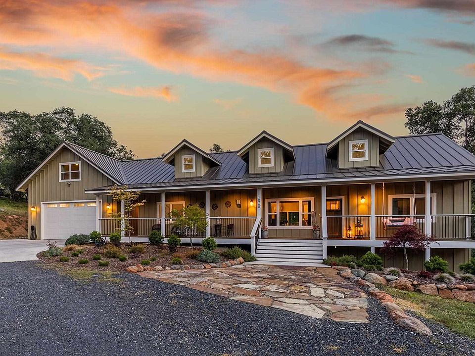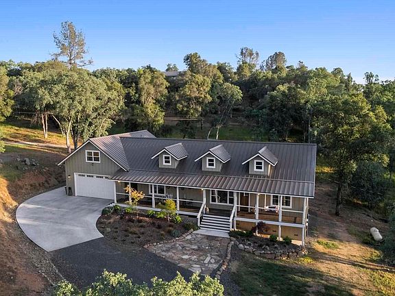 Exceptionally crafted Custom Farmhouse built in 2020, located in the highly desirable Old Wards Ferry area. Situated on nearly 2 acres in the rolling hills of E. Sonora, this home is only 3 miles to town, yet feels like you are in the secluded countryside. With the main house containing a single-level 1,885 sf 3BR/2ba, plus 1BR/1Ba 651 sf accessory unit, gives you a total living space of 2,536 sf. The open-concept great room is perfect for entertaining with vaulted wood ceilings, hardwood floors & stone hearth propane fireplace. The kitchen features distinctive porcelain countertops; stainless appliances and over-sized island with breakfast bar and high-end fixtures top off the room. Equipped with a wrap-around covered porch and covered breeze-way between the house and garage, gives this home substantial additional outdoor living space. The fully finished attached accessory unit above the 4-car tandem garage has a sizeable bonus room with full bathroom; kitchenette and ductless mini-split heat & air unit and would be perfect for an in-law unit; man-cave; game room; theater room or 4th bedroom. The nearly new construction includes a fully owned solar system with 24 panels, TESLA whole house backup battery system with auto-switch if power goes out; well with variable speed pump & 50+ gal/min; water softener and septic system, on-demand hot water heater; electric vehicle charging station; whole house fan; tracks garage organizer; plus fire sprinklers and RV parking just add to the amazing amenities. Enjoy nearby hiking, biking, boating & water sports, as well as day trips to Yosemite National Park, Pinecrest Lake, Dodge Ridge Ski Resort, local wineries, Sonora Pass and more. Only a few hours drive to the Bay Area and several International Airports. The 1.66 acre lot next door is also available MLS#20220631.