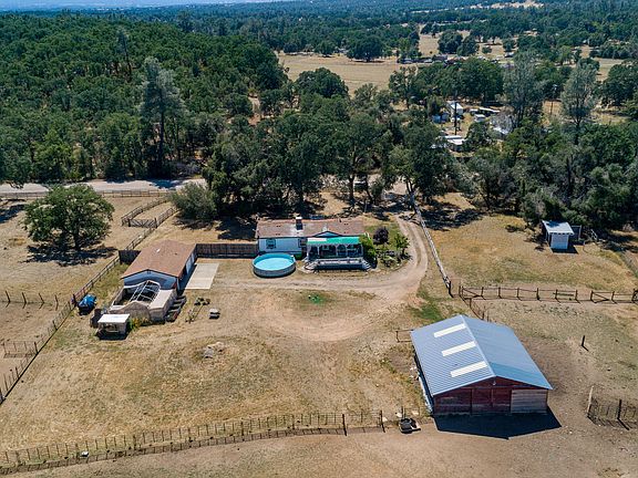 This private country home sitting on just over 5 acres is ready for the holidays! Home offers 2 bedroom with office 2 full bathrooms with garden tub, detached oversize 2 car garage with shop, 6 stall barn, above ground irrigation, salt water pool, RV hooks-ups, 25x25 enclosed garden area. Office could easily be converted to a third bedroom. Fenced and cross fenced.5 additional acres available