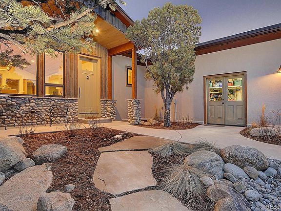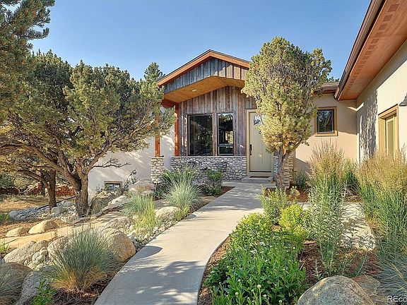 Eloquently stated, this beautiful home was thoughtfully designed to capture the majestic view of Mt. Princeton impeccably. An extraordinary night sky and peaceful mornings await you on the covered deck of this 3,388 SF custom home, which embodies the pure comfort of the mountain lifestyle. Stunning views of the Collegiate Peaks beckon you to join the renowned outdoor activities offered in the area. This 3 bedroom, 3 bath, and 2 office home with main-floor living offers the ultimate mountain experience, accented with elegance and classic design. The open, main living space with an aspen-paneled cathedral ceiling includes a cozy area for relaxing and entertaining, and access to an inviting deck adorned with custom metalwork. The spacious dining room overlooks the front garden, offering grand views through the living room to the mountain peaks beyond. Inspiration flows easily in the custom kitchen, featuring gorgeous cabinetry, granite countertops, island, walk-in pantry, farm sink, and upgraded appliances. A charming primary bedroom with deck access is located on the east end of the house. The primary bath features an oversized walk-in shower, beautiful woodwork, and walk-in closet. Inspiring views can be enjoyed from the private office with French door access to its own deck. A full bath, laundry room, and mudroom with access to the 4-car tandem garage complete the main level. The light-filled lower level includes a large family room, a convenient kitchen area, two spacious bedrooms, a second office space/den, tiled bathroom, laundry facilities for the lower level, and walkout access to a lower covered patio. The home offers ample storage space throughout. The attractive exterior of the home is thoughtfully crafted, bathed in natural light, and enhanced by creative finishes alongside perennial beds creating incredible soothing spaces. Located close to downtown Buena Vista in a peaceful neighborhood with access to endless trails for memorable outdoor experiences.