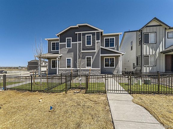 Estimated completion is Feb/March 2024. West facing front yard and front door. This Westport Plan is designed to maximize space and your lifestyle. Walk through the foyer from the front porch, and an open-concept great room with natural light plus a dining room and a stylish kitchen awaits. Fitted with a large center island and stainless-steel appliances, entertain or cook as you please. Upstairs boasts the laundry room, two spacious secondary bedrooms and your lavish private primary suite— featuring an en-suite bath with a benched shower, dual vanity, and roomy walk-in-closet. upgraded design of this home features modern WHITE shaker style cabinets throughout with a sparkling white quartz countertop and upgraded beautiful blue backsplash. This home also features a useable fenced-in front yard facing west - very rare for townhomes! Off all main roads for a quiet private space. The community features many parks, trails and a pool. Photos are not of this exact property. They are for representational purposes only. Please contact builder for specifics on this property. Don’t miss out on the new reduced pricing good through 5/31/2024. Prices and incentives are contingent upon buyer closing a loan with builders affiliated lender and are subject to change at any time.