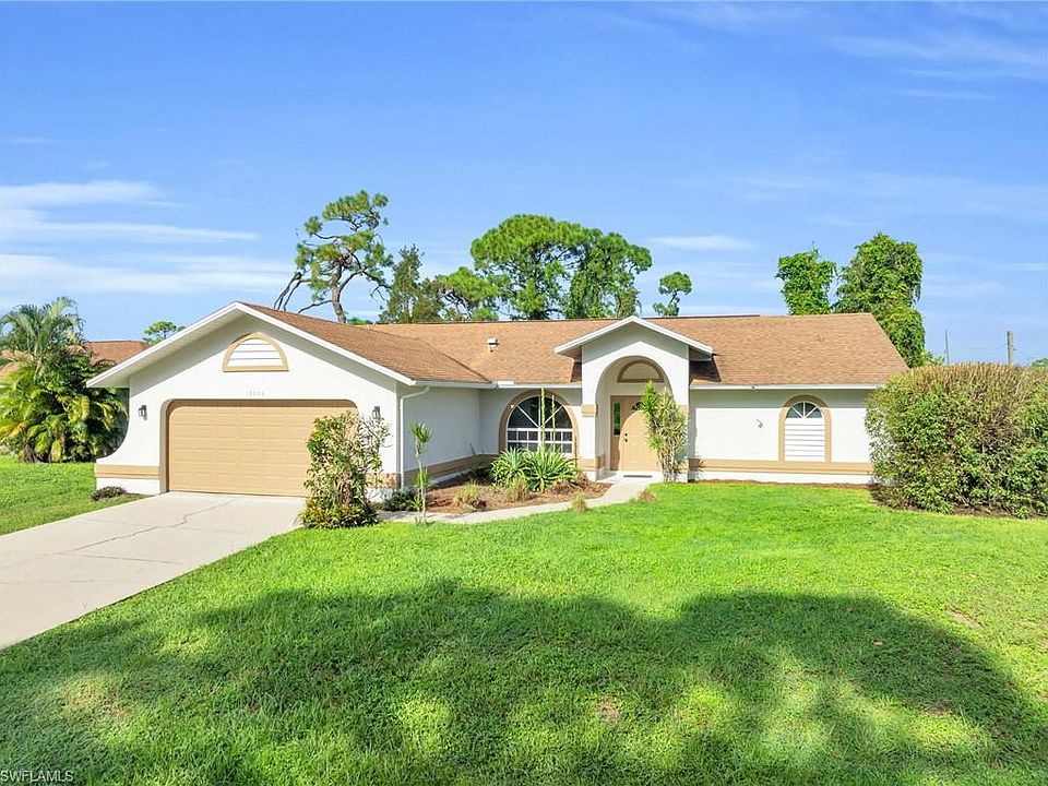 Welcome to this stunning, FULLY UPDATED, three-bedroom, two-bathroom home, located in the highly sought-after, NO HOA, San Carlos Park community. Nestled on a spacious CORNER HOMESITE, this property offers an unparalleled sense of PRIVACY with WOODED LOTS both in front and behind, creating a serene, natural setting. Step inside to find beautifully upgraded features throughout, including BRAND-NEW FLOORING in all bedrooms and fresh, modern INTERIOR and EXTERIOR PAINT. The heart of the home, the kitchen, showcases BRAND-NEW STAINLESS STEEL appliances, SOFT CLOSE DRAWERS, a BREAKFAST BAR and GRANITE COUNTERTOPS, perfect for whipping up your favorite meals in style. The primary suite offers an VAULTED CEILING and tons of natural light, with access to your SCREENED LANAI. The primary bathroom boasts DUAL SINKS in the vanity, GRANITE COUNTERTOPS, a large tiled shower with a luxurious handheld shower head, and a spacious WALK IN CLOSET, for plenty of storage and organization. Additional highlights include a DINING AREA with arched window, convenient TWO-CAR ATTACHED GARAGE, an INSIDE LAUNDRY ROOM with built in cabinetry, and a HUGE SCREENED LANAI perfect for relaxing or entertaining. BOATING enthusiasts will love the quick five-minute drive to Mullock Creek Marina, offering easy access to Estero Bay for all your water adventures. And with NO HOA RESTRICTIONS, you’ll have the freedom to STORE YOUR BOAT, toys, or business vehicles RIGHT AT HOME. Also enjoy nearby San Carlos Community Park with a playground and POOL! Get an annual family membership for just $100 per year! This property truly combines the best of Florida living with comfort, style, and convenience. Don’t miss your chance to make this beautiful home your own!