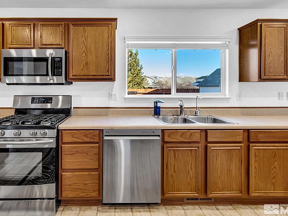 Beautiful inside and out with $50,000+ in upgrades. New carpeting upstairs, new blinds & sliding verticals downstairs, new dishwasher, refrigerator & washer/dryer. Custom paint in the home & the finished garage, Epoxy flooring in the garage as well. New 9x50 cement patio w/steps and landscaping front & back. Pride of ownership. Move in ready. Great corner lot with no neighbors behind, with RV parking with it's own dump station & 220V Minutes from the Tahoe Reno International airport & downtown Reno, The Woodland Village Community has a lot to offer. There is a family center with basketball, fitness center and after school programs. Elementary and Middle Schools are within the community as well. There are 3 parks and a large dog park. Enjoy the great walking trails both paved or rural for the avid hiker.