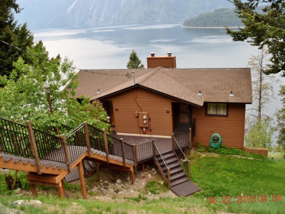 Magnificent Lake views from this waterfront condo. 2 levels with full on views. Walk in level has kitchen living area and lower level is Master bedroom , living area, laundry and full remodeled bathroom. Both have large decks with views of the South end of Pend Oreille Lake. Just minutes to Farragut State Park, or dock your boat right at the marina in Bayview. End unit, HOA covers water/swr/garb and insurance. Great get away for summer boating or winter skiing. 12 Units total 6 dwellings 2 unit each