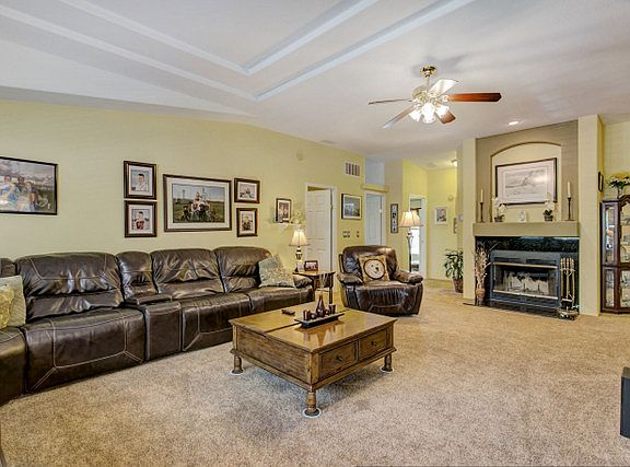 This spacious, country home sits on over 5 beautiful and very private acres of land. Not any part of this property touches any public road. This house has new interior paint and carpet. The large family room offers a cozy fireplace, tray ceilings and custom built-ins. It opens to a great kitchen with granite counter tops, island, breakfast bar, walk-in pantry, tons of cabinet space and a roomy dining area that has a private entry from the front porch. There are 4 open bedrooms plus den with skylights, bonus/game room, and 3 full bathrooms. Split bedroom design for privacy. Large master suite plus 2nd master, which can double as guest suite for visiting family and friends. The master suite has an attached nursery or office/den. The master bathroom has granite counters, and tub surround for the deep bathtub. The vast landscaped yard offers a scenic view with huge patio, walking trail to additional patio with private hot tub and built in fire pit, custom-covered hammock, play structure, storage shed and sparkling Dough Boy above-ground pool. The back yard is 2 acres, and is completely fenced. The front yard is large enough that is has been used for weddings. Out front there is a detached shop with overhead storage and work benches plus covered RV parking with a 50 amp RV hookup. There is a batting cage, and a massive 3000 square foot garden area! This property has lots of easy access parking for dozens of vehicles. House has a Kinetico water softener and a reverse osmosis filtration system for the purest drinking water.