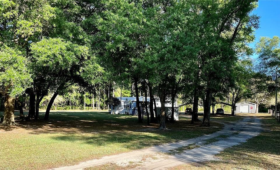 This is quiet, country living! Beautifully treed property with lots of room for your mini farm, garden, RV, boat or trailer! Nestled on a gated and fenced, 1.3 acre lot, paved cul de sac road, this 3 bed 2 bath home has been loved and meticulously maintained by the owner. Not one, but two decks are built off of this home to sit and enjoy the nature that surrounds you. The light and bright interior of this home opens up to a great room with a split floor plan with ceiling fans throughout the home. The master bedroom has a walk in closet, double vanities, with a newly refinished garden tub and walk in shower. The guest bath has been updated with a new shower and toilet. The large eat-in kitchen leads out to an extra room for storage with access to the second deck. Behind the home there are 2 extra storage sheds and a 20X20 detached metal garage all of them equipped with 220 amp electricity and water for all your tinkering and extra toys! The roof is 3 years old. AC is 6 years old. New interior paint. Close to the Suncoast Parkway for easy commute to Tampa International Airport, Shopping and Hospitals. This home is so cute AND the bonus is that the owner will consider concessions towards closing costs! Don't miss out on this lovely piece of paradise!